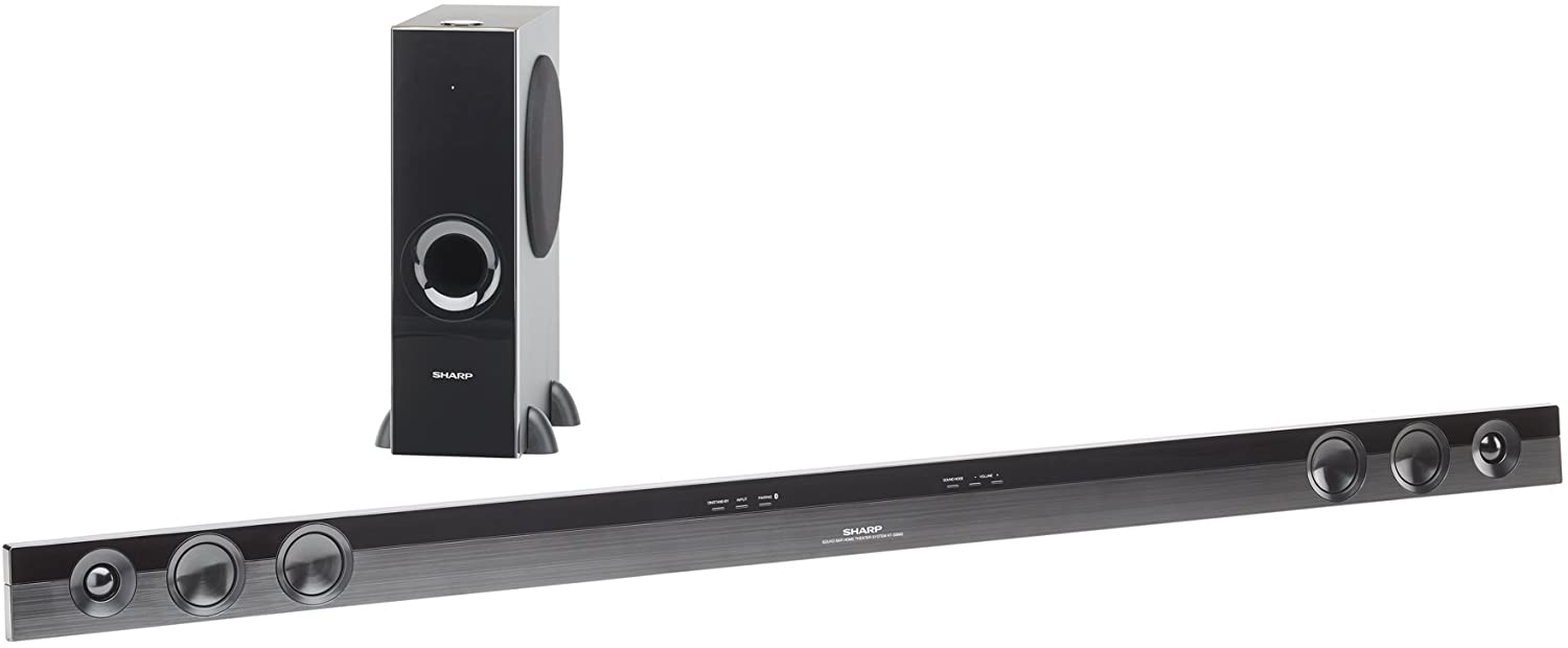 The Sharp HT-SB602 home theater sound bar comes with a wireless 8-inch subwoofer that adds powerful bass presence. This sound bar also features good connectivity options, including two HDMI cables and Bluetooth for wireless music streaming. It didn’t do as well as other sound bars in simulating surround sound, but for movies and music, this sound bar holds its own.